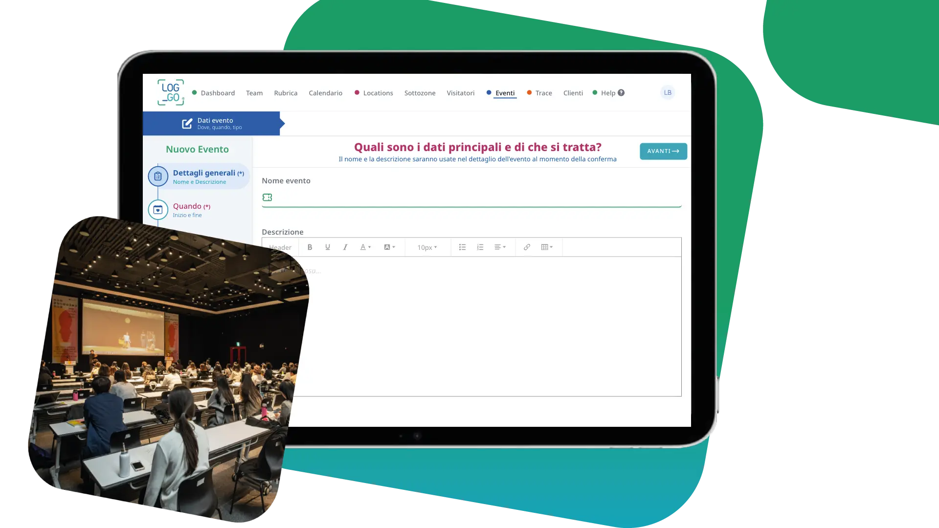 Con Loggo® Access puoi monitorare, analizzare gli ingressi e riconoscere chi sta entrando a far parte dei tuoi spazi di lavoro. Inoltre ottimizza il tempo dei dipendenti in azienda permettendo loro di organizzare e gestire riunioni e appuntamenti con solo due click. Loggo® è parte integrante del team in azienda al fianco della direzione e del personale interno.