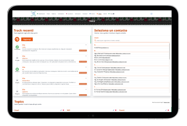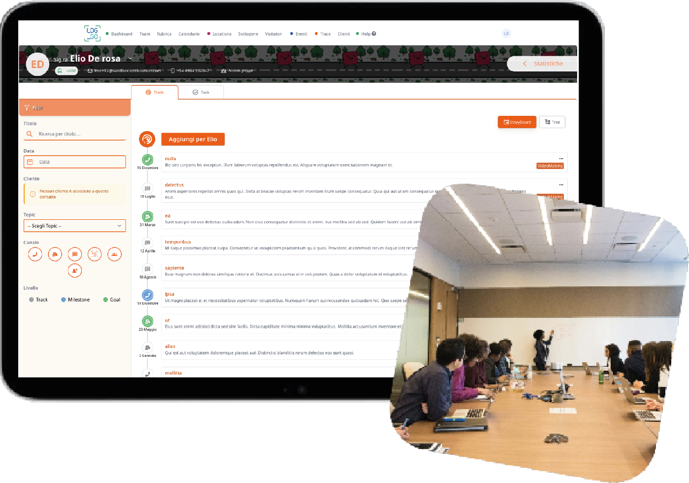 Come un vero e proprio diario di bordo LOGGO Trace riesce a tenere traccia di appunti durante una telefonata, offerte e preventivi in attesa di feedback, telefonate, messaggi e di tutti i passaggi che sono stati necessari per arrivare al tuo obiettivo.