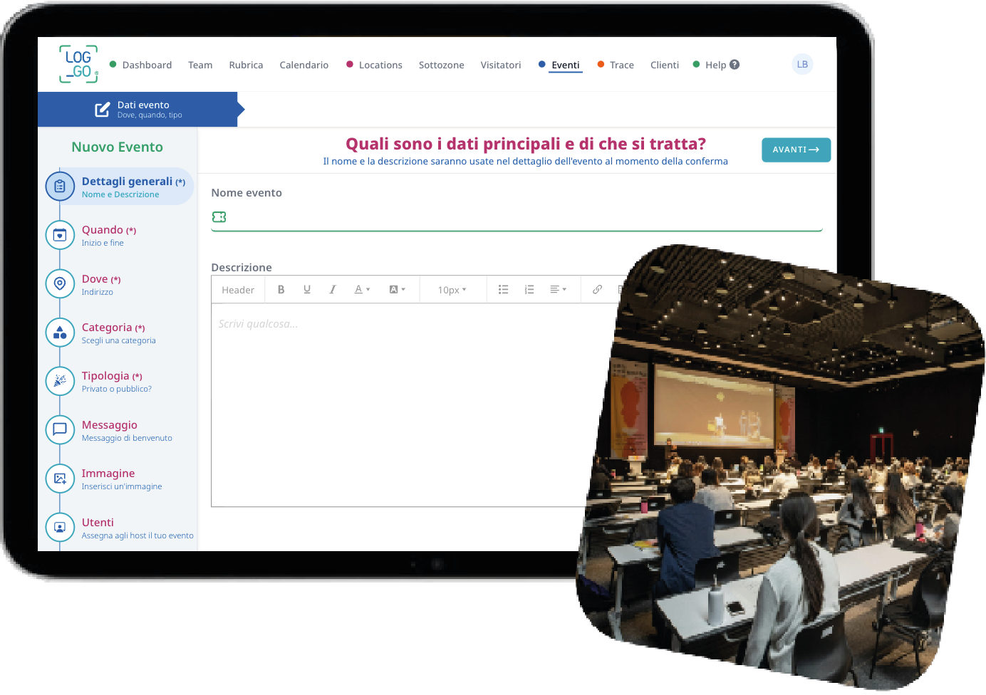 Con Loggo® Access puoi monitorare, analizzare gli ingressi e riconoscere chi sta entrando a far parte dei tuoi spazi di lavoro. Inoltre ottimizza il tempo dei dipendenti in azienda permettendo loro di organizzare e gestire riunioni e appuntamenti con solo due click. Loggo® è parte integrante del team in azienda al fianco della direzione e del personale interno.