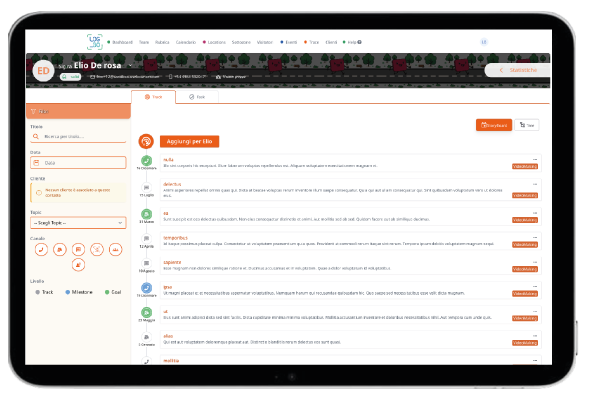 Come un vero e proprio diario di bordo LOGGO Trace riesce a tenere traccia di appunti durante una telefonata, offerte e preventivi in attesa di feedback, telefonate, messaggi e di tutti i passaggi che sono stati necessari per arrivare al tuo obiettivo.